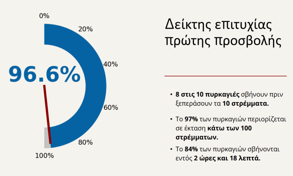 8 στις 10 πυρκαγιές σβήνουν πριν ξεπεράσουν τα 10 στρέμματα.