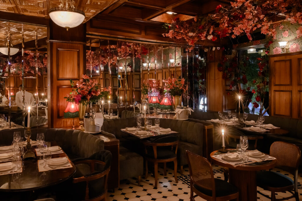 Τραβάς τη βαριά, βελούδινη κουρτίνα της εισόδου και αφήνεις πίσω σου την Αθήνα. Μπροστά σου, μια φωτεινή μπάρα με μαρμάρινη επιφάνεια, πίσω της το υποφωτισμένο ψυγείο κρασιών που λειτουργεί σαν πρώτο visual statement. Καθρέφτες, ταπετσαρίες με τριαντάφυλλα σε πλήρη άνθιση, πράσινες βελούδινες πολυθρόνες, χαμηλός φωτισμός και κεριά συνθέτουν μια ατμόσφαιρα παριζιάνικης brasserie. Είναι το ιδανικό σκηνικό για ένα σοφιστικέ ραντεβού ή ένα δείπνο με καθαρά γαλλική αύρα.