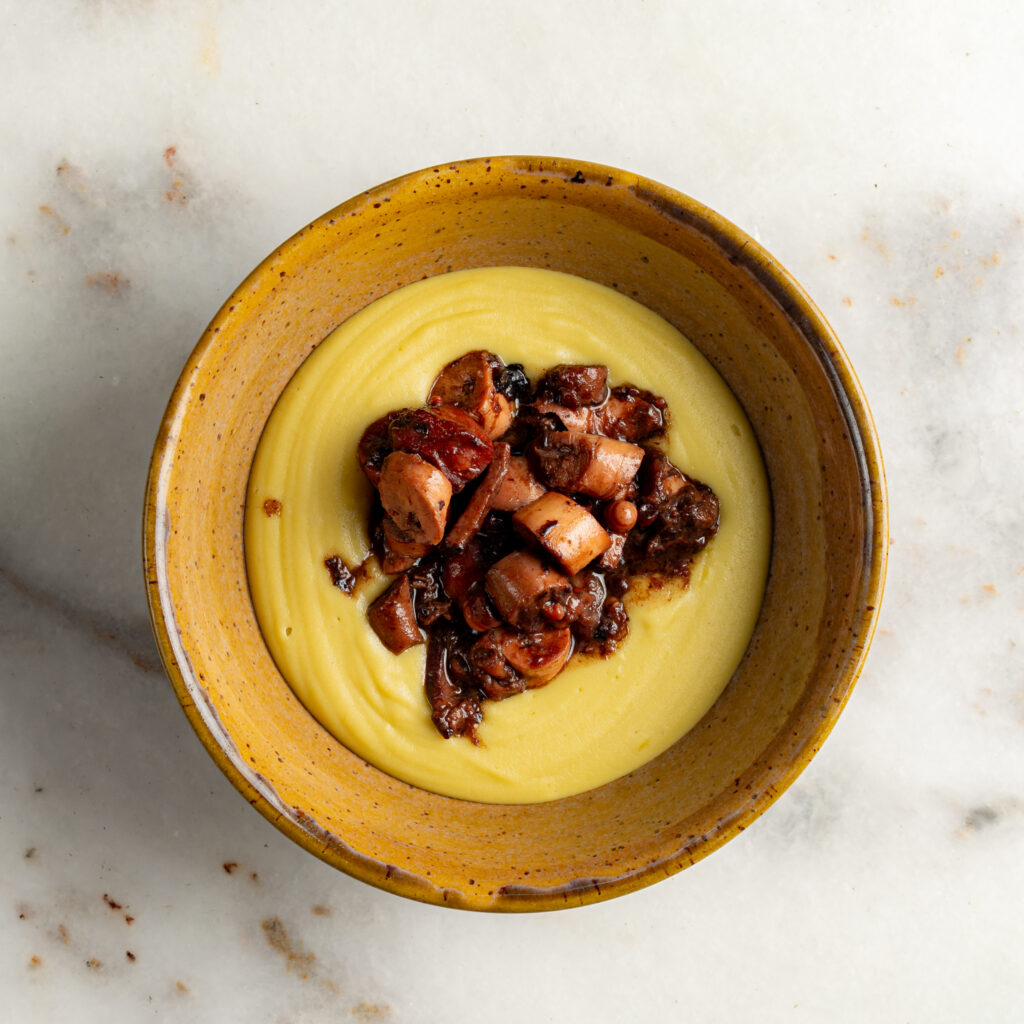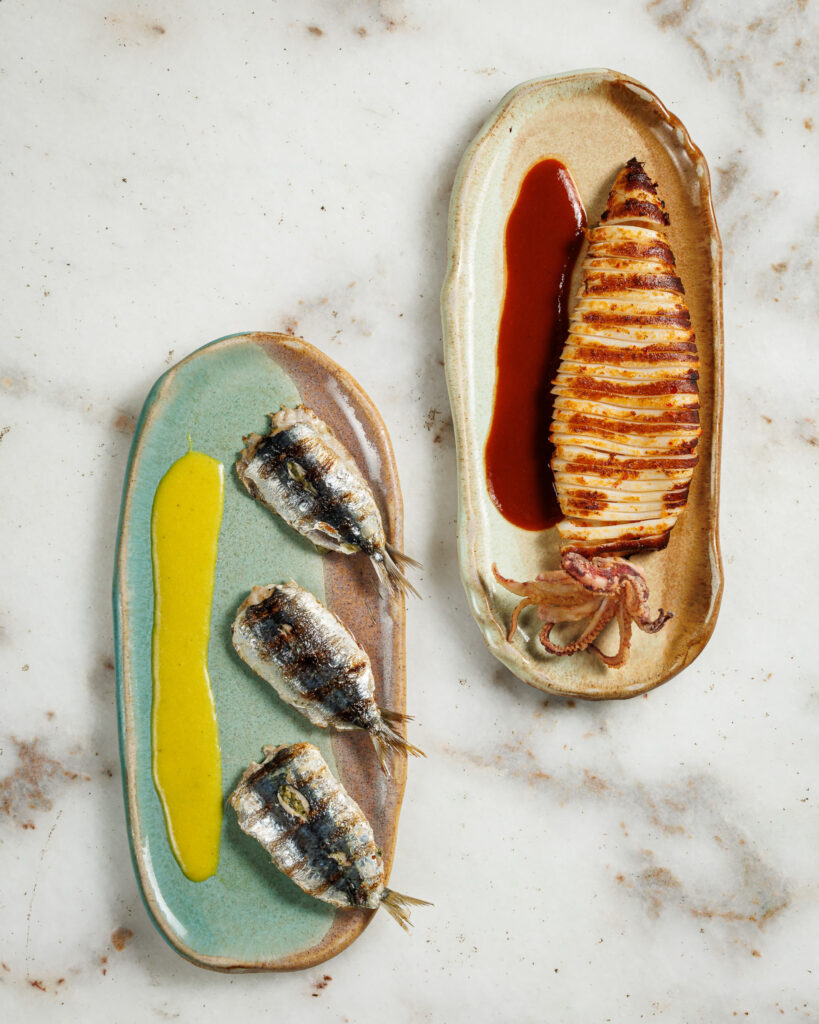 Στην κουζίνα ο Πέσκιας παραμένει hands-on και εμφανώς σε φόρμα. Η κάρτα της Γλυφάδας καθρεφτίζει εκείνη του κέντρου και κερδίζει αμέσως τις εντυπώσεις. Η καπνιστή μελιτζανοσαλάτα με dressing πιπεριάς Φλωρίνης βγαίνει βελούδινη και καπνιστή, το τζατζίκι με αβοκάντο είναι μια δροσερή, μοντέρνα εκδοχή της ελληνικής κλασικής σάλτσας, η ταραμοσαλάτα με τα κρακεράκια ρυζιού παίζει ωραία με τις υφές, το σταμναγκάθι με yuzu και λευκό ξινοτύρι φέρνει μια αναπάντεχη οξύτητα που «ξύπνα» το πιάτο, ενώ η τσιροσαλάτα δουλεμένη σαν ταραμάς είναι ένα καθαρό, ιωδιούχο μεζεδάκι για πρώτο ποτήρι. Από τα τηγανητά, οι τυροκροκέτες (γραβιέρα–κασέρι) με chutney ντομάτας είναι τραγανές απ’ έξω, γεμάτες λιωμένο τυρί μέσα και έχουν ένα γλυκοπικάντικο τελείωμα.