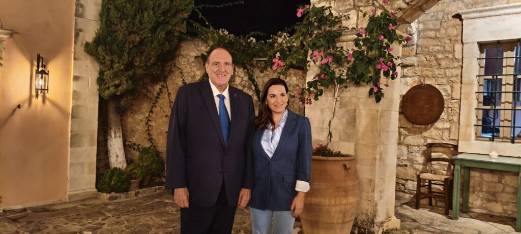 Ο Δημήτρης Καλαϊτζιδάκης, Operations Director του ομίλου Grecotel με την Υπουργό Τουρισμού, Όλγα Κεφαλογιάννη, στην Agrecofarm