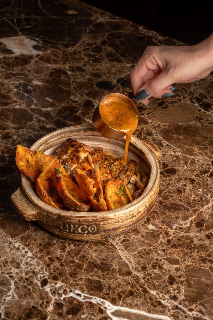 Παρότι ποντάρει στη διασκέδαση, το Geco παίρνει πολύ σοβαρά το φαγητό που σερβίρει. Ο σεφ Παναγιώτης Φλάκας ηγείται της κουζίνας, ενώ στην ομάδα προστέθηκε ο Χρήστος Ρήγας (CTC). Μαζί υπογράφουν ένα μοντέρνο μενού με επίκεντρο τις ελληνικές γεύσεις, σε διάλογο με διεθνή trends: comfort και τεχνική, φρεσκάδα και πολυπλοκότητα, «όλα στη μέση» και πρώτη ύλη κορυφαίας ποιότητας.