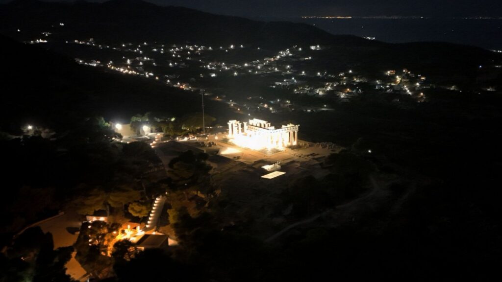 Νέα δεδομένα στην τουριστική ελκυστικότητα της Αίγινας δημιουργεί ο εντυπωσιακός φωτισμός του αρχαίου ναού της Αφαίας, ο οποίος εγκαινιάστηκε προχθές παρουσία της υπουργού Πολιτισμού Λίνας Μενδώνη. Η τελετή αποτέλεσε σημείο αναφοράς για το νησί, καθώς το έργο δεν αφορά απλώς μια τεχνική παρέμβαση, αλλά μια ουσιαστική πολιτιστική και αισθητική ανάδειξη ενός από τα σημαντικότερα μνημεία της κλασικής αρχαιότητας.