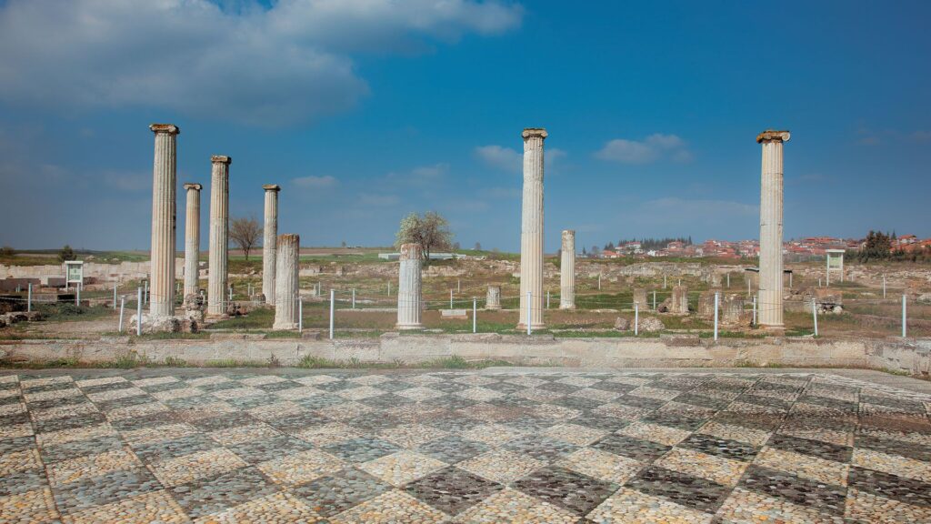 Η γύρω γη φυλάσσει μνήμες χιλιετιών. Η βασιλική πρωτεύουσα των Μακεδόνων, που έφερε το όνομα Πέλλα, έχει αποκαλύψει στους αρχαιολόγους μόνο ένα κλάσμα των μυστικών της. Η πεδιάδα εξακολουθεί να κρύβει κάτω από την επιφάνειά της χρυσά νομίσματα, κοσμήματα και λείψανα αρχαίων εγκαταστάσεων. Οι τύμβοι που διαγράφονται στον ορίζοντα αφηγούνται σιωπηλά ιστορίες μιας εποχής που η Μακεδονία κυριαρχούσε στον γνωστό κόσμο.