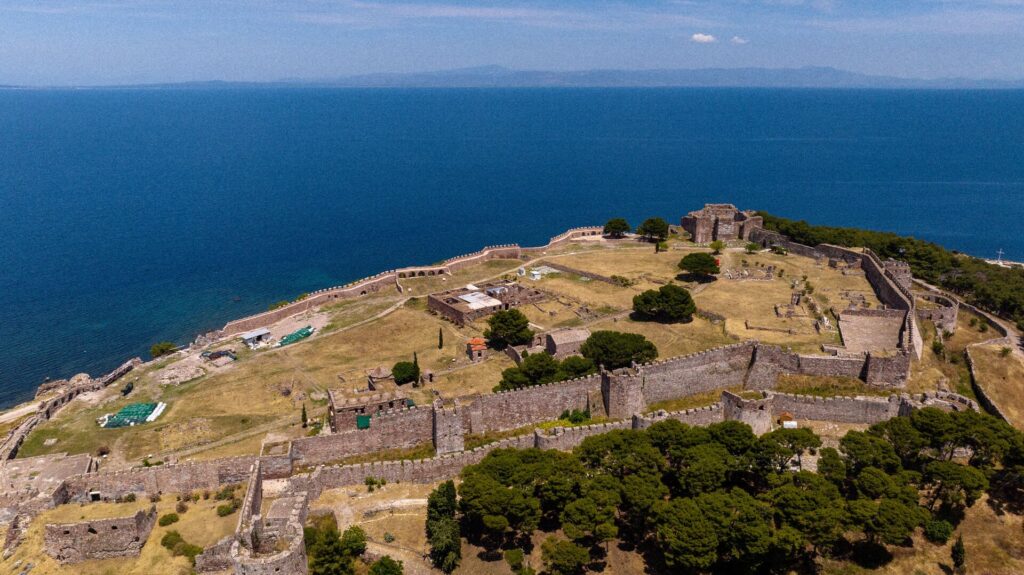 Η βόλτα ξεκινά από το σημείο που δεσπόζει στα βορειοανατολικά της πόλης: το επιβλητικό Κάστρο της Μυτιλήνης. Ένα από τα μεγαλύτερα και καλύτερα διατηρημένα κάστρα της Ανατολικής Μεσογείου, αποτελεί έναν σιωπηλό μάρτυρα της πολυτάραχης ιστορίας του νησιού. Θεμελιωμένο πάνω στα ερείπια αρχαίας ακρόπολης, γνώρισε σημαντικές επεμβάσεις κατά τη βυζαντινή περίοδο από τον αυτοκράτορα Ιουστινιανό τον 6ο αιώνα. Η σημερινή του μορφή, ωστόσο, οφείλεται κυρίως στους Γατελούζους, τη γενοβέζικη δυναστεία που κυβέρνησε το νησί από το 1355. Περπατώντας στα τείχη του, ο επισκέπτης μπορεί να διακρίνει τις διαφορετικές οικοδομικές φάσεις, από τα βυζαντινά τμήματα και τα οικόσημα των Γατελούζων μέχρι τις οθωμανικές προσθήκες, όπως το μεντρεσέ (ιεροδιδασκαλείο) και το χαμάμ. Η πανοραμική θέα προς την πόλη, το λιμάνι και τις μικρασιατικές ακτές είναι απλώς μαγευτική.