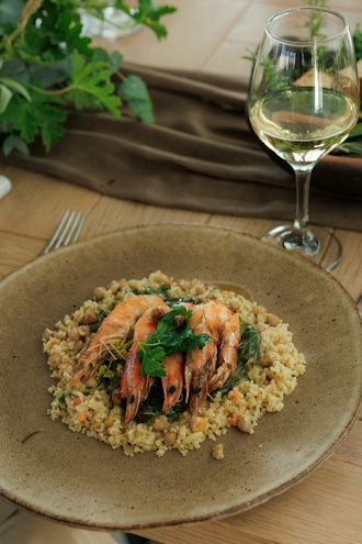 Η σαλάτα γλιστρίδας με ρόδι, μάραθο, σταφύλια και αμύγδαλα προσέφερε πολύτιμα ω-3 λιπαρά για την καρδιά και τον νου, ενώ τα κυρίως πιάτα - αργοψημένο αρνάκι με μαντζουράνα, δάφνη και δίκταμο και ψητή συναγρίδα με αρμπαρόριζα - συνδύαζαν πρωτεΐνη και θεραπευτικά βότανα με αναζωογονητικές ιδιότητες για ανοσοποιητικό, πέψη και ενέργεια. Το γεύμα ολοκληρώθηκε με παγωτό γιαούρτι με σταφύλι Μοσχάτο και ρόδι, πλούσιο σε προβιοτικά και αντιοξειδωτικά, ιδανικό για αναζωογόνηση.