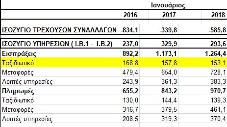 Net travel receipts in Greece did not change considerably, despite a significant increase of 16% in non-residents' arrivals in January 2018, according to the latest report by the Bank of Greece.