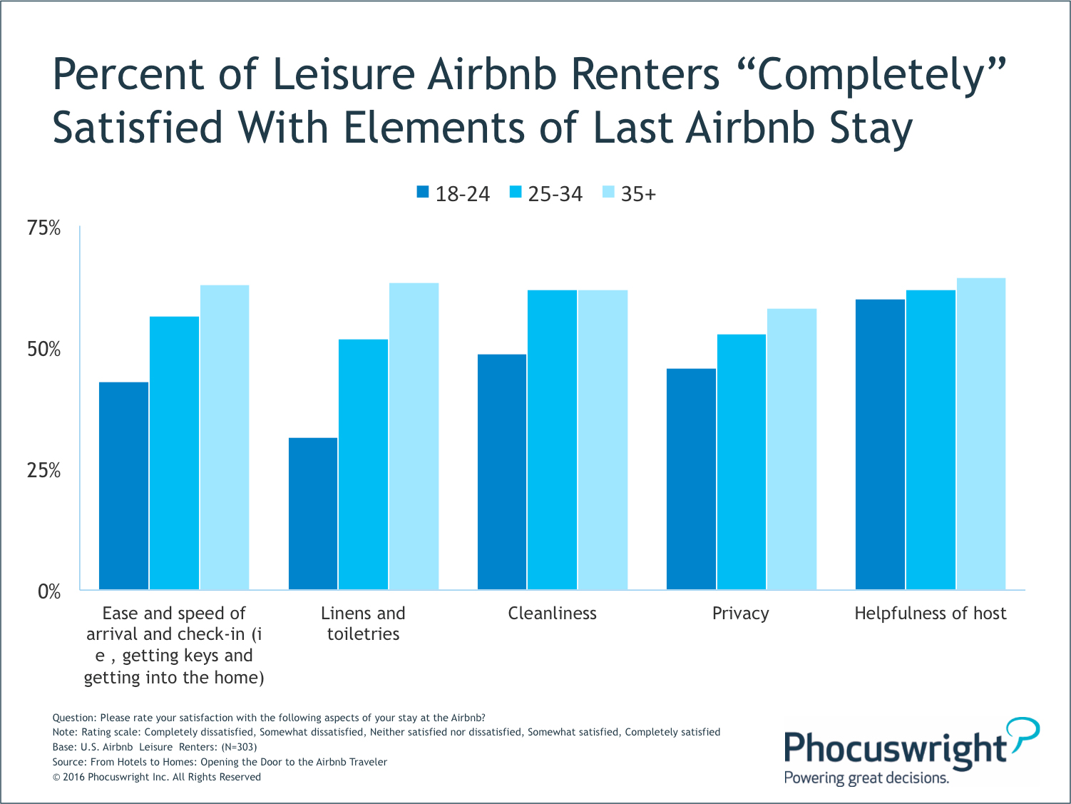Phocuswright's From Hotels to Homes: Opening the Door to the Airbnb Traveler offers an unprecedented view of the Airbnb consumer – exploring who's renting with the brand, why and how often. This study also takes a deep dive into travelers' last Airbnb rental experiences, revealing facets about their trips such as what motivated them to rent, where they stayed and for how long, their experiences with hosts, overall satisfaction and much more. This report also delves into the business side of things, examining the experiences of travelers who rented an Airbnb for a business trip within the past two years.