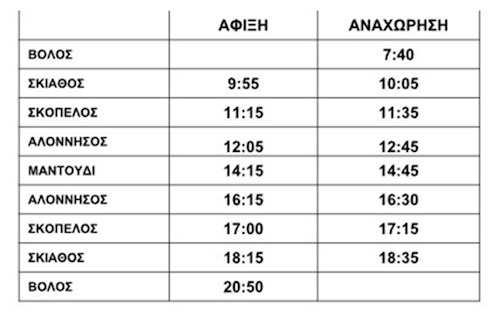 Βόλος – Σκιάθος – Σκόπελος – Αλόννησος – Μαντούδι Ευβοίας (και επιστροφή).