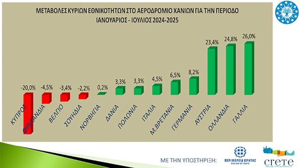 Η φετινή αύξηση, σε σχέση με το 2024, οφείλεται αποκλειστικά στους μη Σκανδιναβούς, οι οποίοι σημειώνουν ποσοστό αύξησης 5%. Αντίθετα, οι Σκανδιναβοί καταγράφουν οριακή μείωση, με τους Φινλανδούς και Σουηδούς να σημειώνουν πτώση αφίξεων κατά 5% και 2%, αντίστοιχα.