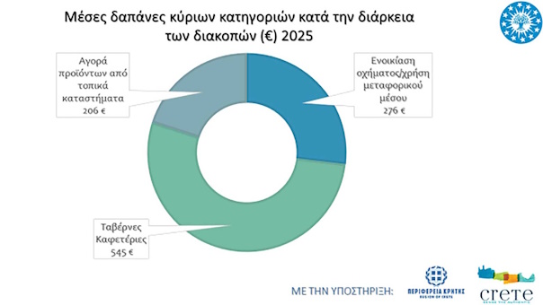 Στα ίδια επίπεδα με αυτά του 2024 διατηρήθηκε η μέση δαπάνη των τουριστών στη Δυτική Κρήτη στις κύριες κατηγορίες εξόδων τους το φετινό καλοκαίρι (για την ακρίβεια, μέχρι το τέλος Ιουλίου), σύμφωνα με την ετήσια έρευνα για το προφίλ των τουριστών στην περιοχή, που βρίσκεται εν εξελίξει.