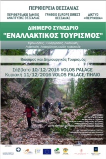 Όλα είναι έτοιμα για το, εδώ και πολύ καιρό προγραμματισμένο, ανοιχτό σε όλους, Συνέδριο Εναλλακτικού Τουρισμού που έχει ανακοινώσει πριν ένα μήνα η Περιφέρεια Θεσσαλίας, το Περιφερειακό Ταμείο Ανάπτυξης Θεσσαλίας, το Γραφείο Ευρωπαϊκής Πληροφόρησης Europe Direct Θεσσαλίας, η Π.Ε. Μαγνησίας και Σποράδων, ο 2/βάθμιος Φορέας Πολιτισμού και Επιστημών Δίκτυο «ΠΕΡΡΑΙΒΙΑ» και το Δίκτυο Εθελοντικών Οργανώσεων Θεσσαλίας, με τη στήριξη και την αμέριστη συνεργασία του Ξενοδοχειακού Επιμελητηρίου Ελλάδος και της Εταιρείας Ανάπτυξης Πηλίου, στο Βόλο, το Σάββατο 10 και την Κυριακή 11 Δεκεμβρίου 2016, στο Ξενοδοχείο VOLOS PALACE και στο Πήλιο, με τίτλο: