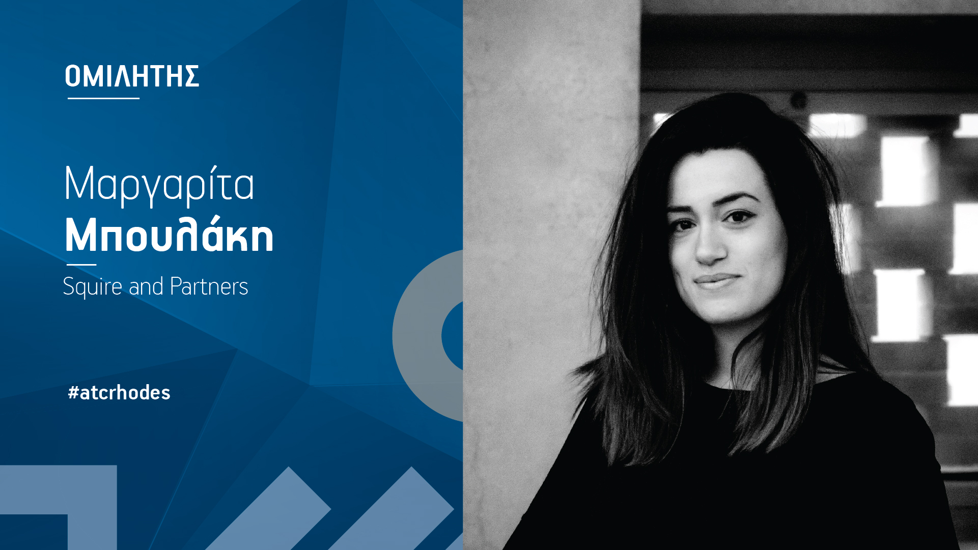 Στο πάνελ θα βρίσκεται και η Μαργαρίτα Μπουλάκη, η οποία εκπροσωπεί το άλλο μεγάλο γραφείο του Λονδίνου, τους Squire and Partners. Αγκαλιάζοντας τις παραδοσιακές αλλά και αναδυόμενες τεχνολογίες, τo γραφείο δημιουργεί διαχρονική αρχιτεκτονική με ρίζες στην κληρονομιά κάθε τόπο. Η Μαργαρίτα Μπουλάκη έχει ευρύ ακαδημαϊκό υπόβαθρο με σπουδές στην αρχιτεκτονική, το σχεδιασμό περιβάλλοντος, τις διεθνείς σχέσεις και τη διπλωματία, σε πέντε ευρωπαϊκά πανεπιστήμια.